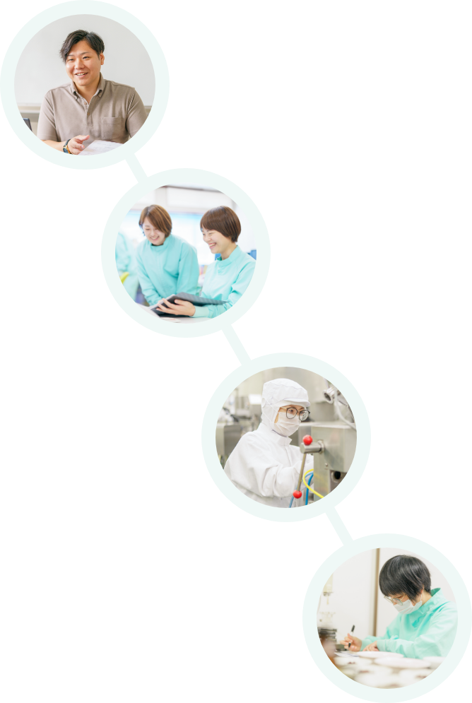 レシピに基づき製品を製造・充填し、出荷できる状態に仕上げるのが主な業務です。製品それぞれの特性を理解し、安定した品質で効率よくお客様にお届けできるよう日々取り組んでいます。