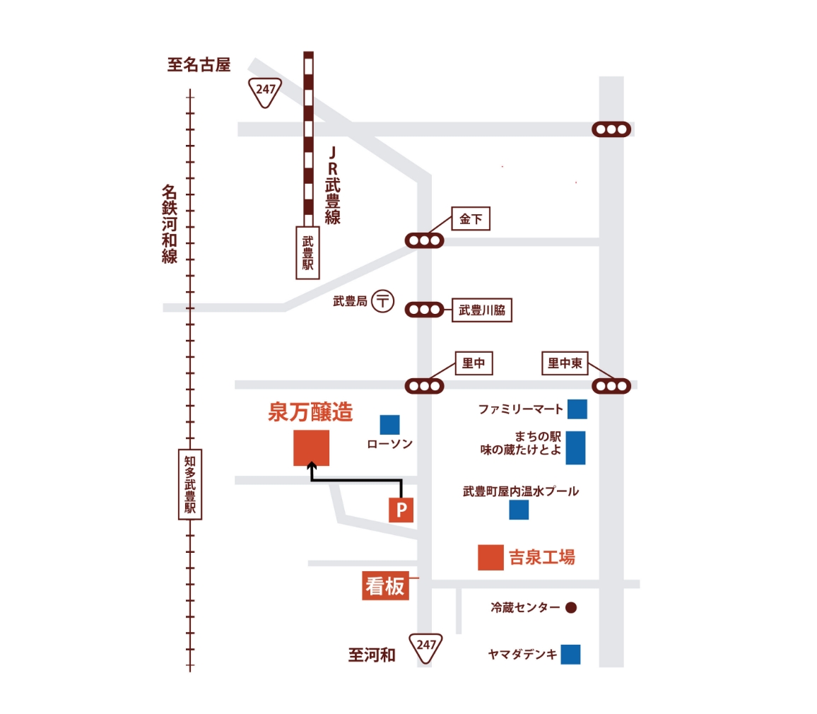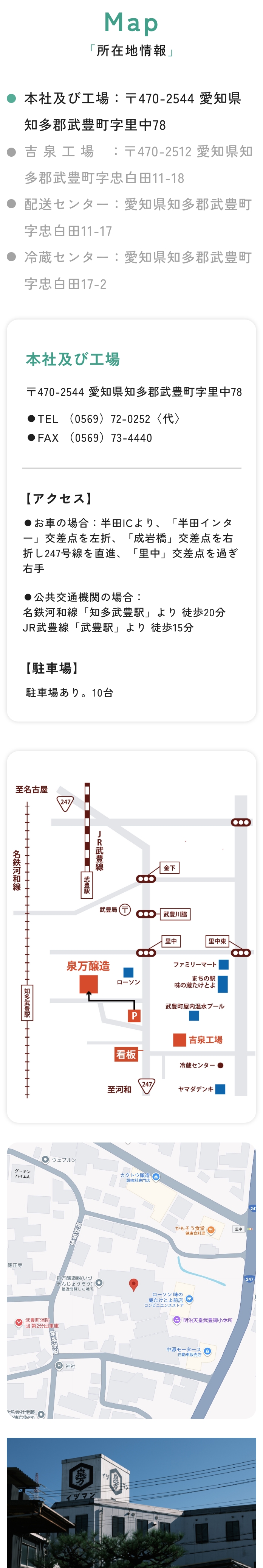 ⚫︎お車の場合:半田ICより、「半田インター」交差点を左折、「成岩橋」交差点を右折し247号線を直進、「里中」交差点を過ぎ右手