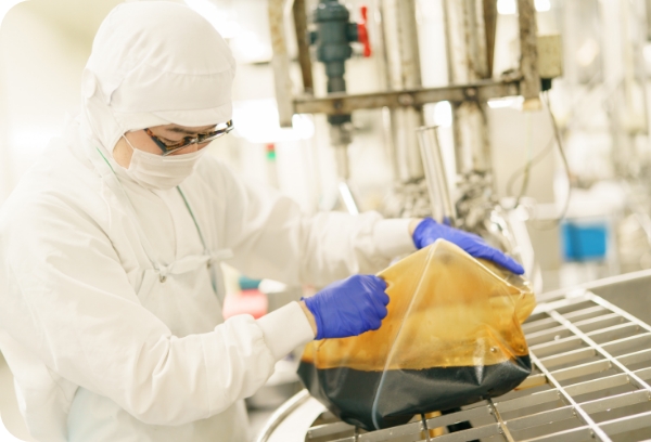 はい、「釜炊き」・「火入れ」という工程を担当しています。具材投入のタイミングや温度を管理する仕事なんですが、ミスをすると数百kg分の製品がダメになってしまうので責任重大です。前職の経験も考慮していただけたようで、入社3ヶ月後ぐらいで覚えたこともあり1人で今の仕事の担当に。これまでに身につけた技術がちゃんと評価してもらえているのは嬉しいですね。