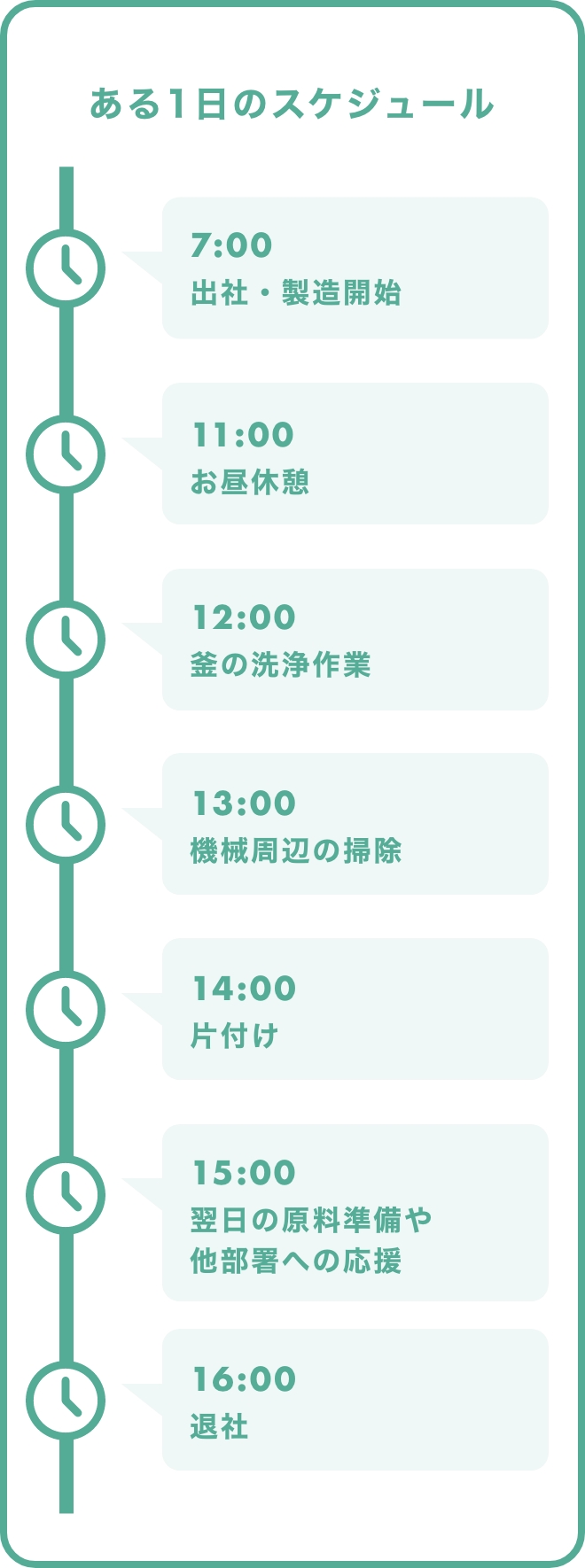 ものづくりが好きで、社会や地域に貢献することにやりがいを感じる方に合っている会社だと思います。上司も先輩も気さくで優しく、協力的。規則正しい生活ができるので、長く健康的に働けるのではないでしょうか。一緒に製造を行って、地域に貢献できる仲間になってもらえたら嬉しいです。